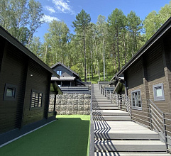 На территории находятся таунхаусы и коттеджи класса люк, баня, хамам.