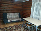 Дома с теплым полом. В каждом домике две комнаты. Спальня с двуспальной кроватью (постельное белье). В зале диван (раскладывается; постельное белье), столовая зона (стол, стулья), кухонная зона. В кухонной зоне: телевизор, холодильник, микроволновая печь, электрический чайник, электрическая плита, 2 кастрюли, 1 сковородка, набор посуды.