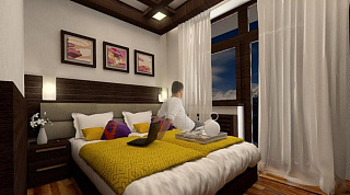 VIP апартамент «Сюита гор» задуман как эксклюзивное предложение для высоких гостей, предпочитающих уникальность во всем, что косается их образа жизни. Апартамент имеет отдельный вход с этажа и располагает 3 комнатами: 2 спальнями и гостиной с барной стойкой.