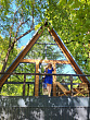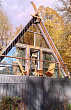 Одновременно в А-фрейме могут комфортно проживать до четырех человек.