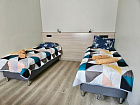 В модульном доме – 8 номеров (20 м2) и 4 номера (24 м2) для размещения от 1 до 3-х гостей, санузел в каждом номере, централизованное отопление, водоснабжение. В каждом номере две односпальные или одна двуспальная кровать с ортопедическим матрацем, стулья, тумбы/полки для хранения вещей, санузел (раковина, унитаз, ванна, полотенцесушитель). Вместимость каждого дома: 24 человека. Номерной фонд: 12 номеров. Пункт питания: столовая (комплексное питание). Типы питания: 3-х разовое.