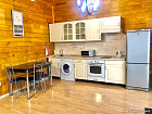 В доме есть одна спальня и гостиная совмещенная с кухней. Домик полностью оборудован комфортной мебелью, современной техникой и посудой. Также имеется стиральная машинка, сушилка для белья, утюг, фен, принадлежности для барбекю (решетка, шампура). Телевизор