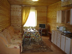 На территории также имеется коттедж, рассчитанный на 12 человек: евроремонт, обустроенная кухня, бытовая техника. На 1 этаже - кухня, гостиная, ванная комната, спальня. Второй этаж - 3 спальни с двуспальными и полутороспальными кроватями. Цена проживания - 8 000 в сутки (отдельные условия для проживающих в будние дни).