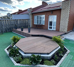 Мангальная зона - общая, в жилом комплексе, обустроенная. Во дворике мангала нет. Во дворике зона отдыха, терраса, качели, стол и стулья на террасе.