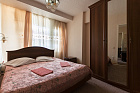 Двуспальная кровать, раскладная кровать, два кресла,тумбочка, зеркало, встроенный шкаф,телевизор, санузел, ванна, холодильник, балкон.