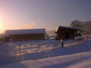 В мини-гостинице 4 отапливаемых номера (10-15 чел), 2 сан.узла, душ, дом (3-5 чел) с русской печью, большая баня, находится на берегу реки Ай, рядом цао Евразия, живописное тихое место//цена 500-700 р
