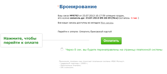 Заказ создан! Выбранные вами номера ожидают оплаты и не могут быть проданы кому-либо еще. Вы в одном шаге от получения подтверждения вашего бронирования.