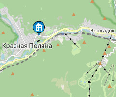 Коттедж находится в самом центре Красной Поляны. Высокие потолки и большие окна с видом на горы, дают ощущение полета и свободы. Светлые, натуральные цвета и материалы современного интерьера, гармонию которого не нарушает современная техника и подчеркивает уют камина. Компания оценит близость к цивилизации в сочетании с тишиной и уютом. В 5 минутах ходьбы 6 ресторанов и кафе, 4 магазина, река и парк.