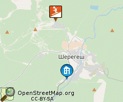 Расположен в коттеджной застройке на въезде в пос. Шерегеш в 3 километрах от его центра.