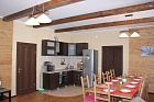 3) Номер-студия (с большой террасой, имеет отдельный вход с улицы и общий вход) с двуспальной кроватью + двуспальный диван + раскладное кресло. Санузел в номере (раковина, унитаз, душевая кабина), кухонный уголок с бытовой техникой.