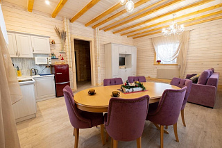 Просторные комнаты и полностью оборудованная кухня обеспечат вам незабываемый комфорт. Весь интерьер сделан из дерева, благодаря чему в доме ощущается свежесть и уединение с природой. Экологически чистый материал (дерево) окружает повсюду. Удобная мебель и вся фурнитура также обладают своим необыкновенным стилем.