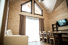 Апарт-отель – это 5 современных шале с видом на горы. Уютная и спокойная атмосфера, созданная для настоящего отдыха. Вдоль отеля проходит прогулочная аллея с местами для отдыха и перекуров. Освещенная территория позволит совершать прогулки в вечернее время.
