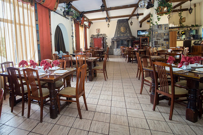 К услугам гостей комплекса ресторан на 80 мест, стилизованный под средневековый замок. Здесь Вы сможете не только отведать блюда европейской кухни, мясные и рыбные блюда-«гриль», приготовленные на открытом огне, выпить чашечку ароматного кофе, а при желании чего-нибудь покрепче в барах, но и потанцевать, послушать живую музыку.