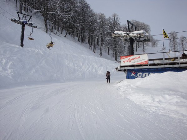 Самолетом или поездом до Адлера; до горнолыжного курорта можно добраться на такси или на автобусе.