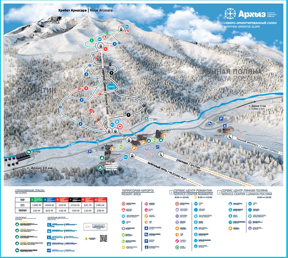 - Инфраструктура курорта будет состоять из кондоминиумов с апартаментами 3 и 4 звезды, гостиниц 3 - 5 звезд и индивидуальных шале. - Будут построены объекты розничной торговли, рестораны, СПА-центры, лыжные школы, досуговые центры, музейный комплекс, аквапарк.