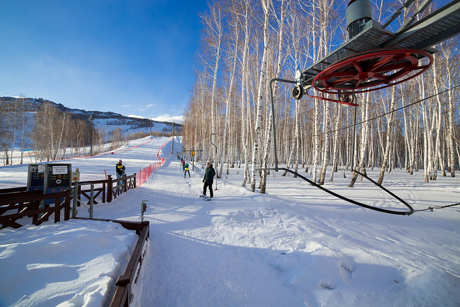 БКД - буксируемая канатная дорога, она же учебный склон или малый комплекс. Подъёмник горнолыжный бугельного типа (фирма Татрапома, Словакия), перепад высот 42 м., длинна 300 м., производительность 660 чел/час, время в пути 2 минуты, скорость 2,2 м/сек.
