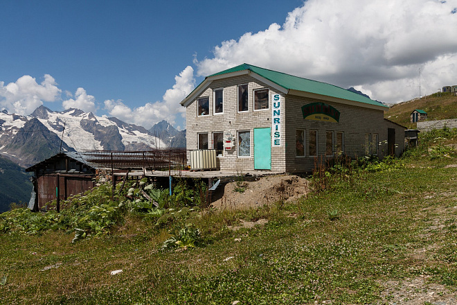 Главная / Горнолыжные курорты России / Домбай / Инфраструктура / Прокаты снаряжения / Прокат при кафе «Sunrise»