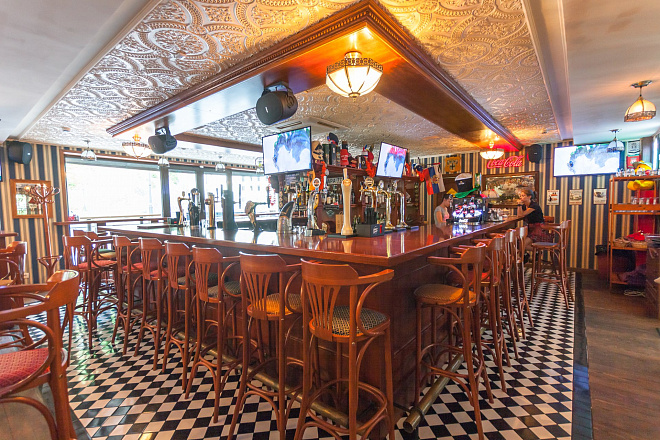 В меню: напитки Ирландии, блюда альпийской кухни, трансляции спортивных мероприятий у подножия Кавказских гор. Вместимость паба 250 посадочных места, из них 100 посадочных мест на 1 этаже, 150 – на втором, и 36 – на летней веранде.