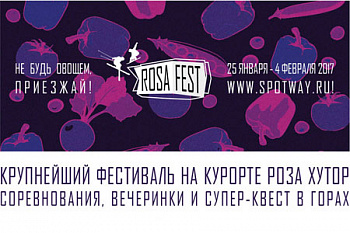 В конце января на горном курорте «Роза Хутор» стартует ежегодный зимний фестиваль ROSAFEST 2017. Здесь, на самом популярном российском круглогодичном курорте, соберутся известные экстрим-гуру, амбассадоры спортивных брендов, победители соревнований и горные гиды. На #rosafest2017 ожидается около 3000 человек, каждый почувствует настоящую перезагрузку. С 25 января по 4 февраля 2017 - в самый снежный период зимы!
