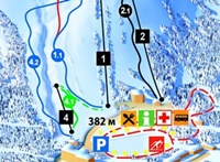 - Семь трасс (в том числе учебная трасса, две трассы специального слалома и слалом-гигант);