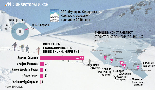 Председатель Совета директоров КСК напомнил, что общий объем государственных вложений в Северокавказский туристический кластер определен постановлением правительства РФ в 60 млрд. рублей на весь период реализации проекта и остается неизменным. При этом государственные средства направляются на строительство объектов коммунальной и транспортной инфраструктуры курортов. Под управлением КСК на Юге России создается масштабный проект по строительству новых горнолыжных курортов мирового класса Лагонаки (Краснодарский край, Адыгея), Архыз (Карачаево-Черкесия), Эльбрус-Безенги (Кабардино-Балкария), Мамисон (Северная Осетия), Матлас (Дагестан), Цори и Армхи (Ингушетия), а также пляжных курортов на побережье Каспийского моря в Дагестане. Протяженность горнолыжных трасс превысит 1100 км, на них установят 227 подъемников. Будут построены гостиницы, апартаменты и коттеджи разного уровня комфортности, рассчитанные на 102,5 тысячи мест, а ежедневная пропускная способность горнолыжных курортов достигнет 172 тысяч человек.