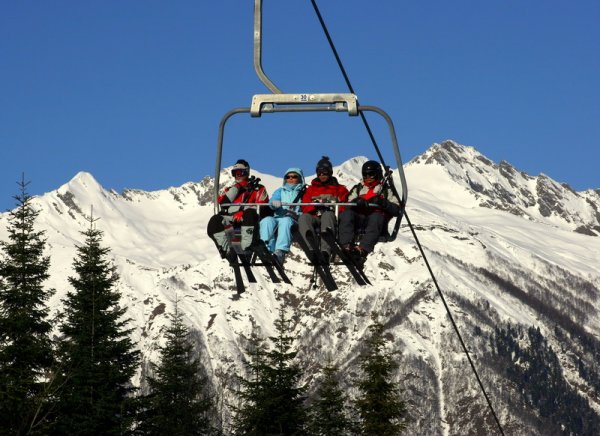 Самолетом или поездом до Адлера; до горнолыжного курорта можно добраться на такси или на автобусе.