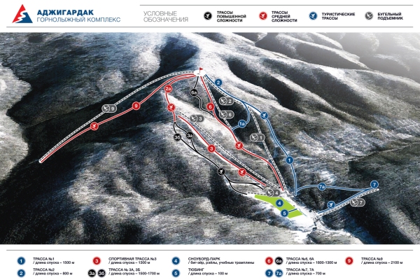В ГЛК "Аджигардак" открылась новая фрирайдная трасса 6а. Её длина составляет 1300 м., ширина 40 м. По максимальной крутизне она не уступает даже трассе №6. Ее преимущество заключается в расположении – она находится в ложбине, между трассой №6 и №3, где снег удобно скапливается и не сдувается как минимум до апреля.