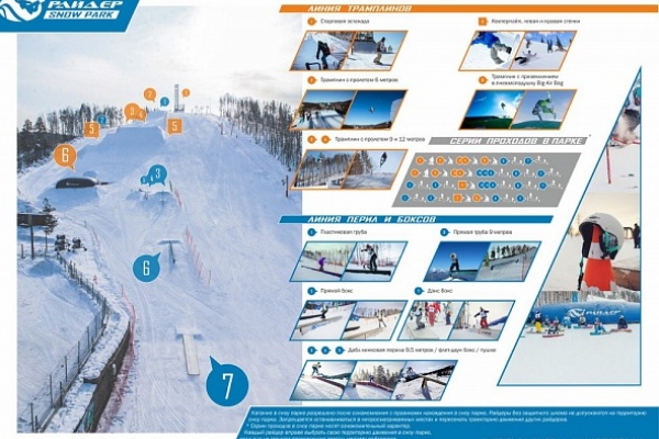 ГЛЦ "Райдер" (Миасс) сделал замечательный подарок для любителей активного зимнего отдыха: в конце февраля на курорте открылся сноупарк мирового уровня! Полноценную слоупстайл серию придумали еще осенью: построили 9,5-метровый даблкинк, новую расстановку фигур и перекроили склон так, чтобы всем было комфортно кататься. Грандиозный сноупарк был перенесен на Восточный склон, что позволило сделать его больше, длиннее и интереснее.