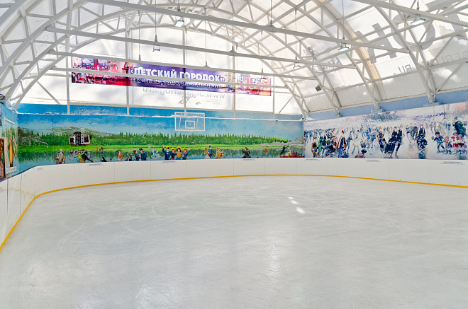 На территории катка расположен пункт проката коньков всех размеров, для детей и взрослых.