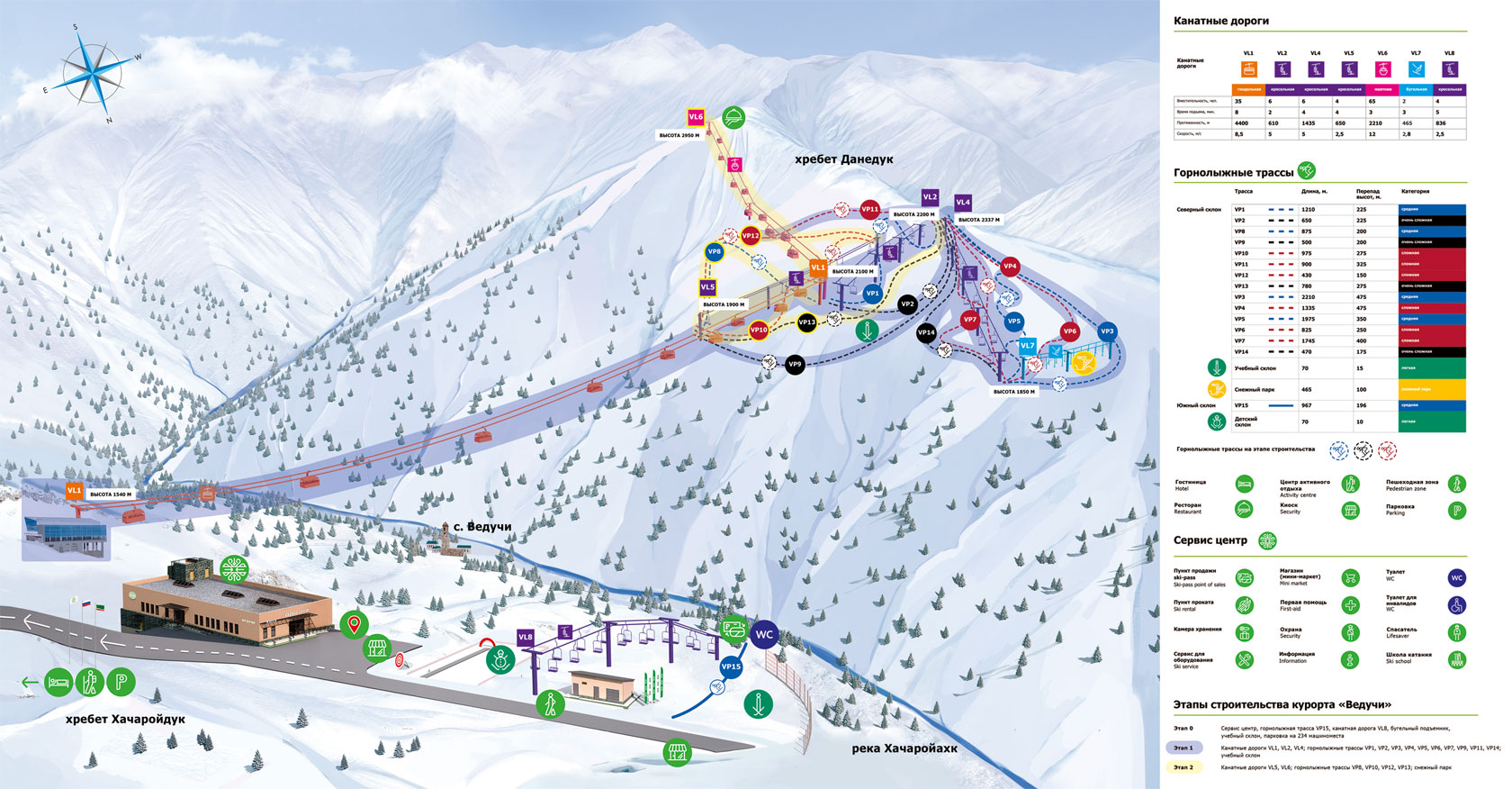 Курорт «Ведучи» предполагает строительство 19 трасс на северных склонах хребта Данедук всех четырех уровней сложности: