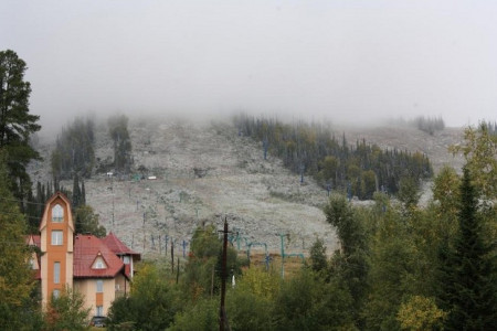 Снег выпал на вершинах горы Зеленая и Мустаг. Толщина снежного покрова