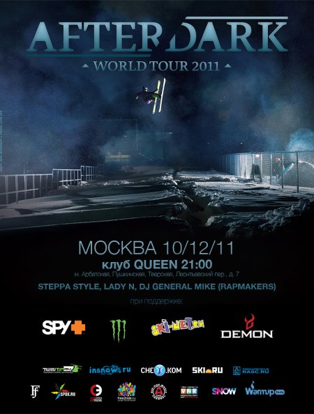 Специально в честь премьеры After Dark, магазин устраивает два дня крутых скидок - в воскресенье 20% скидка на все лыжи, в понедельник 15% скидка на все, что есть в магазине! И самое интересное - скидка 30% на одну модель лыж (в воскресенье) и на другую (в понедельник). Скидки предоставляются по проходным билетам на премьеру After Dark - так что не спешите их вбрасывать.
