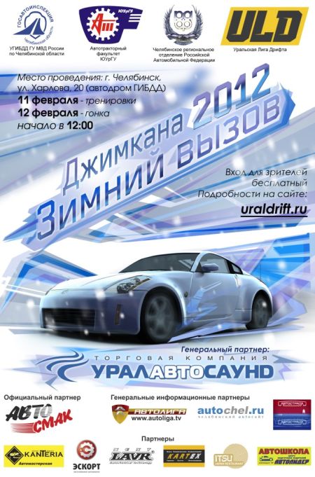 Водителей заднеприводных и полноприводных автомобилей и всех любителей дрифта приглашают на первые в Челябинске соревнования-шоу по дрифт-триалу «Джимкана 2012. Зимний вызов «УралАвтоСаунд».