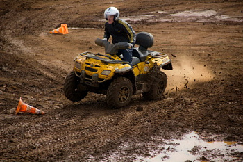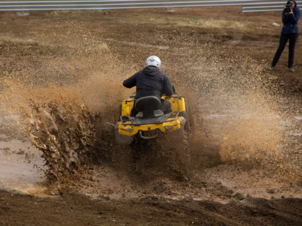 Трасса, богатая обещанными лужами и вязкой грязью, включила также сухие разгонные прямые, скоростные повороты и даже трамплин. Этот микс позволил жадным до адреналина в полной мере оценить возможности полноприводных квадроциклов BRP.