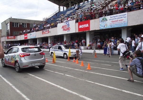 Ну а потом началось то, что скорее подходит какой-нибудь компьютерной игре в стиле «Need for Speed» или американскому боевику с обязательным участием автомобилей и полиции. Участники, продемонстрировавшие лучшие результаты в мужских заездах вышли на старт против асов ижевского ГИБДД. Вновь сменили автомобили – спортсмены выступали на обновленном KIA Rio с механикой, а сотрудники ГИБДД – на своей ВАЗ-2114. И называлось все это суперфиналом. А результат получился весьма знаковым и можно, наверное, сказать, символическим. В трех из четырех заездов победили представители ГИБДД. Они же и заняли весь пьедестал.