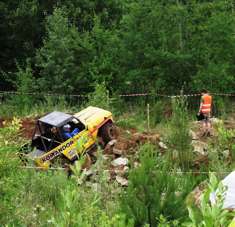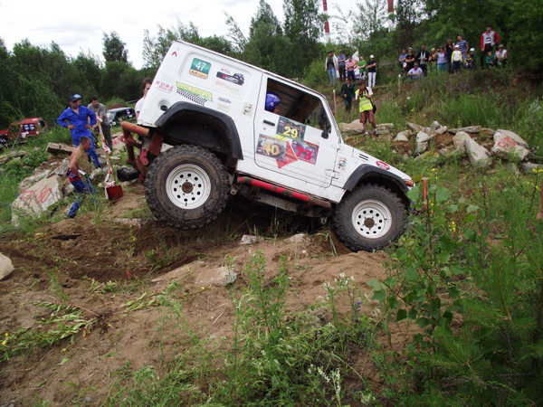 В младших же классах все было, может, и не столь зрелищно, но точно более динамично. Хотя справедливости ради нужно отметить, что не часто можно увидеть, как небольшая «Нива» за доли секунды взбирается на склон крутизной более сорока пяти градусов и высотой превышающий ее «рост», а затем также быстро спускается с него. К тому же, заезды в Д1 и Д2 занимали меньше времени, участники быстрее сменяли друг друга. А изъездив вдоль и поперек небольшой лесной участок, участники переместились на другую секцию, ту самую – заваленную в некоторых местах бетонными блоками. Здесь «чудеса на виражах» продолжились. Все получили то, что хотели: участники – адреналин, а зрители – шоу.