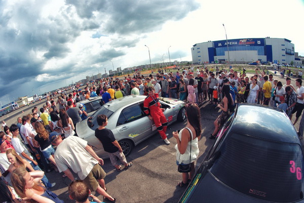 Двухдневные соревнования хороши не только тем, что пилоты могут настроить автомобили и потренироваться (а это вечная проблема – площадок для тренировок в городах нет), но и особенной атмосферой, которая царит на соревнованиях. Что-то здесь от всего автоспорта: доделывается то, на что перед отъездом не хватило времени, поправляются настройки автомобилей, сбившиеся во время перегона, идут тренировки и продолжаются разговоры, которые прервались «всего-то» на три недели перерыва между этапами… А что-то – только «свое», дрифтовое: визг покрышек, устойчивый запах жженой резины и толстый слой резиновой пыли на лицах, автомобилях, инструментах и ноутбуках…