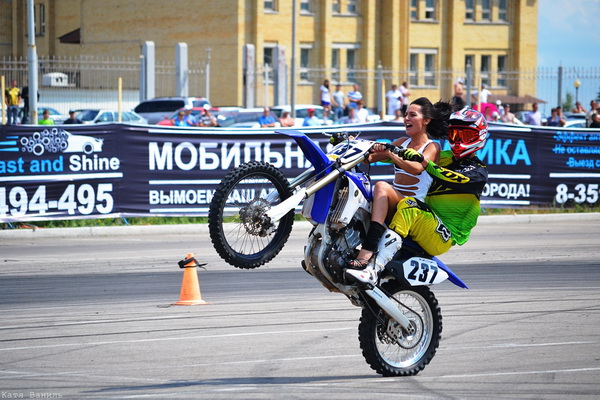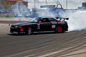 Недрифту в эти два дня посвящены лишь 60 минут – на часовом шоу Магнитогорск показывает, чем богат, а посмотреть есть на что! Сначала на трассу выезжают картингисты, демонстрируя идеальную траекторию прохождения (даааа, заносом тут и не пахнет!); после в небо поднимаются авиамодели; их сменяют знаменитые магнитогорские мотокроссмены, которые демонстрируют высший пилотаж в управлении техникой; не успела публика перевести дыхание, а на трассе уже велоспортсмены крутят сальто вместе с велосипедами и прыгают через людей; громовыми овациями встречает публика байкеров: еще бы, рядом с колоритными мужчинами в банданах и косухах на железных конях примостились очаровательные хрупкие девушки! Интерес не ослабевает, не утихают аплодисменты, но насколько ни было бы интересным и зрелищным это шоу, 2 тысячи зрителей ждут дрифта… И, конечно, никто не собирается их разочаровывать! Шоу завершается представлением ТОП-16, после чего стартуют самые долгожданные и зрелищные парные заезды.