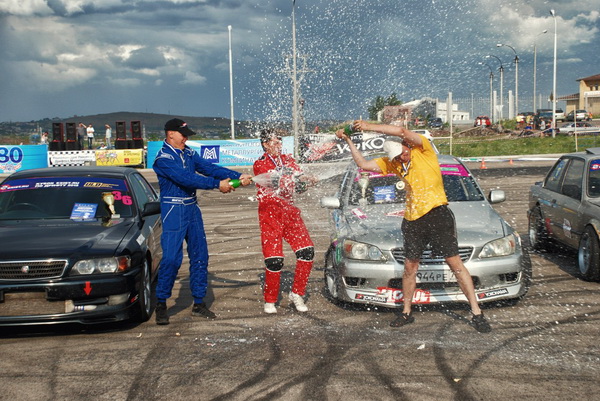 Ну а челябинские пилоты Сергей Кайгородов и Алексей Тазеев стали просто героями дня (можно предположить, что это звание они сохранят на протяжении всей серии 2012 года). Представители одной команды и давние друзья встретились в заезде ТОП-8. Опытный Сергей на своей BMW и Алексей, недавно пересевший с известной в Челябинске ВАЗ 2106 на Nissan Silvia, держали максимальную скорость, бросались в дикие заносы и держали между собой минимальную дистанцию – пара получила рекордное количество перезаездов, настолько великолепными и равными оказались оба пилота. И, наконец, оторвавшийся в момент заезда капот с автомобиля Алексея свел на нет все шансы соперников оспорить право ребят на звание «самый эффектный заезд»! Такое невозможно повторить! Ну а чтобы восторг зрителей был полным, ребята «организовали» еще и контакт – автомобиль Алексея протаранил машину Сергея. В итоге в топ-4 вышел изрядно помятый BMW Сергея Кайгородова.