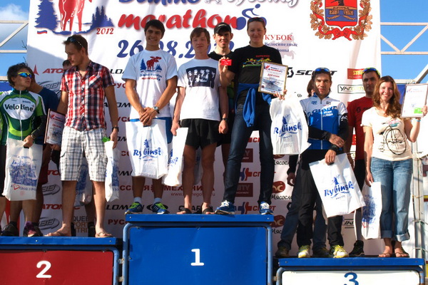 Почти одновременно с юными спортсменами в центральной части стадиона стартовали участники основной и полумарафонской гонки. На дистанцию 31 км вышли 50 атлетов, преимущественно – юноши и девушки. Отличная погода, интересная трасса с крутыми асфальтовыми и «травяными» подъемами, экстремальными спусками и бродом через реку Колокшу создали много интригующих моментов. Первым финишировал 16-летний Иван Филатов (Московская обл.) с результатом 1 час 13 мин 58 сек. Лучший результат среди женщин показала Татьяна Гарбузова (Московская обл.) – 1 час 36 мин 13 сек.