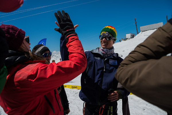 Аггей Скопин: "Трасса в этом году мягче, снег более «кислый», было труднее идти, чем в прошлом году. Но начальный взлет мы прошли быстрее. Вообще, общий темп движения участников стал выше. Поэтому, на следующий год я обязательно пойду с Азау, пора(улыбается)."