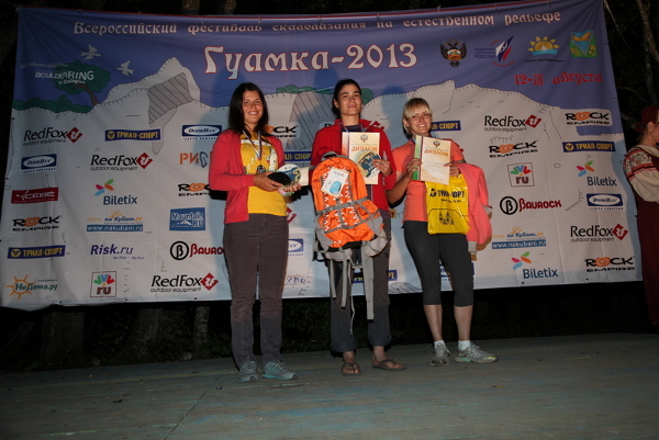 В уважаемом, и, по сути, главном общем зачёте в итоге напряжённого соперничества первые места заняли Ольга Кущь (Самарская обл.) и Юрий Матяш (Ставропольский край). Интересно, что в традиционном «финале» занявшие вторые места в общем зачёте Карина Шейкина (Ставропольский край) и Борис Егоров (Москва) взяли реванш и облезли победителей. Причём, Борису для этого пришлось преодолеть половину мощного нависания в самом конце трассы. По какому-то фантастическому стечению обстоятельств, ни один из финалов фестивалей в Гуамке не обходился без дождя. Так и в этот раз, скорее на радость, чем к печали собравшихся, небо прослезилось, возможно немного переживая за финалистов, но, в основном за то, что очередной фестиваль заканчивается.