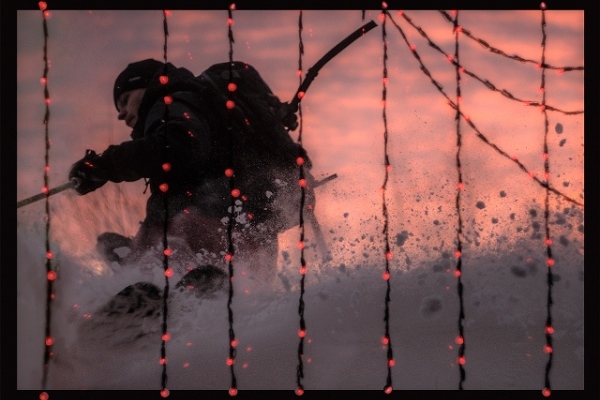 В уютном баре гостям предоставилась возможность согреться, а в окнах на фоне красивейшего закатного неба показали экстрим-кино: