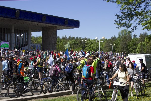 С 13:00 гигантская вереница велосипедов медленно, но верно, начала свой нелегкий путь к Телецентру.