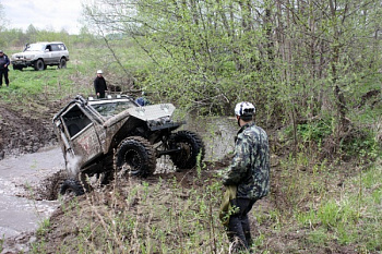Второй день соревнований проходил в районе поселка Алкино-2. Экипажам предстояло пройти три круга по пять километров по высохшим и не очень руслам и болотам. Тактика прохождения бродов и заболоченных участков у всех была разная. Кто-то пытался брать препятствия с ходу и не всегда удачно, кто-то предпочитал разведку и более осторожную езду, но для всех без исключения классов второй день стал настоящим испытанием для людей и машин.