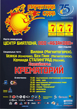 Гладиатор". Музыкальная часть также обещает быть интересной: хедлайнер фестиваля - группа "Крематорий", специальные гости - "Бенн Ганн" (Магнитогорск), "Сталинград"(Москва) и др.