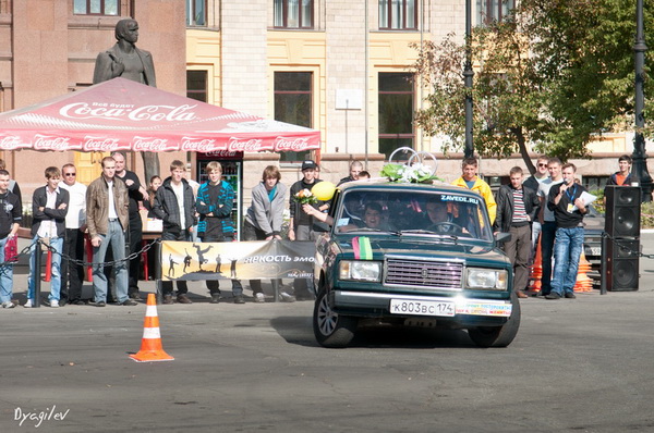 Екатеринбург, Челябинск, Южноуральск, Трехгорный, Катайск, Снежинск, Копейск, Нязепетровск боролись за осенний кубок «виртуоза». Но самое эффектное прохождение трассы показали молодожены – Владимир и Марина Крапивкины. В этот день – 25 сентября – у них была свадьба. Владимир – постоянный участник челябинских автомобильных соревнований – решил на своем ВАЗ 2107 сделать праздник не только себе, но и всем собравшимся в этот день зрителям.