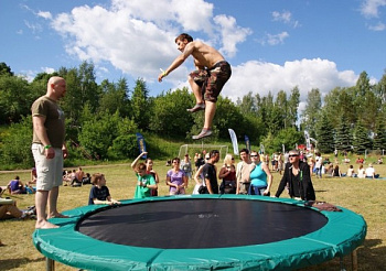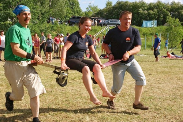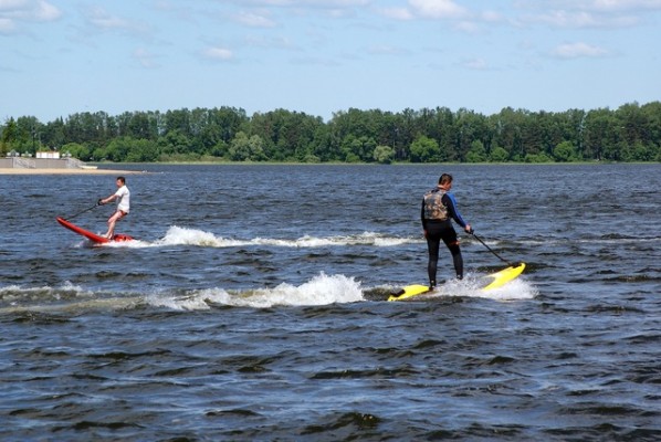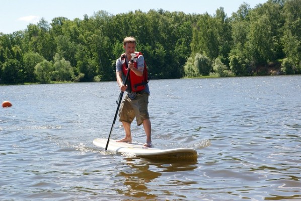 Кстати о виндсерфинге — попробовать встать на доску с парусом можно было буквально в 10 метрах от палаточного лагеря, на берегу Истринского водохранилища. И многие-таки рискнули! Что интересно, те, кто пока был не готов взять в руки парус, мог освоить позицию «человек с веслом», или, по-иностранному, Stand Up Puddle Surfing (SUP). Это новая разновидность водной активности (нужно грести по воде, стоя на доске), которую осваивают даже звезды Голливуда — на «СУПе» были, в том числе, замечены Шер и Камерон Диас. На Истру, они, к сожалению, не доехали, но и без них народ не скучал! По словам смелых окунавшихся людей, вода была отличная — в самый раз для бодрячков!