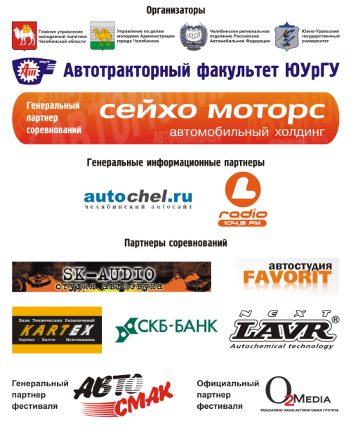 Мы выражаем огромную благодарность Юрию Владимировичу Рождественскому, декану автотракторного факультета ЮУрГУ за всестороннюю поддержку и координацию соревнований. Благодарим картинг-центр KARTEX, компанию SK-AUDIO, автостудию FAVORIT, группу компаний LAVR NEXT и СКБ-банк — за помощь в организации.