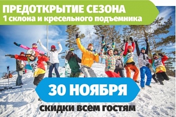 День, который ждали горнолыжники и сноубордисты, наконец-то наступит в ближайшую субботу. Долгожданное открытие 1 склона с вечерним освещением, протяженностью 1650 метров, и кресельного подъемника состоится 30 ноября 2019 года. В выходные будут действовать специальные тарифы на проживание, прокат и подъемник. Официальное открытие с праздничной программой запланировано на 7 и 8 декабря 2019 года.